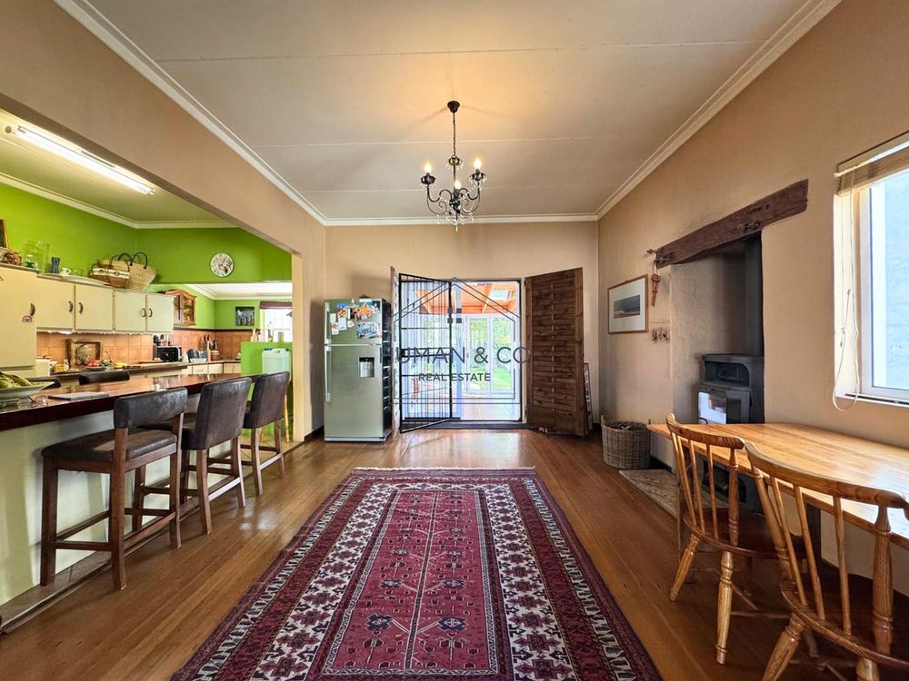 - Dining area with a charming a fireplace