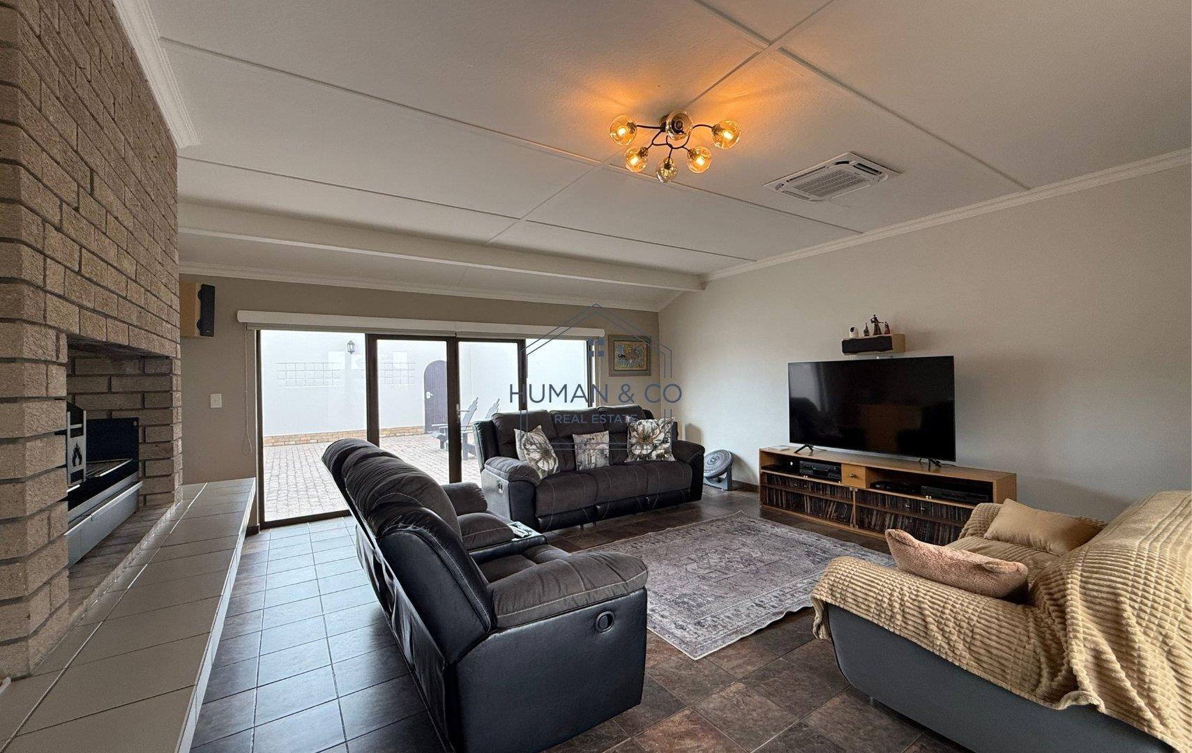 A separate lounge overlooking the beautiful garden, a second lounge with an indoor BBQ fitted with sliding doors that open onto a covered outdoor entertainment area